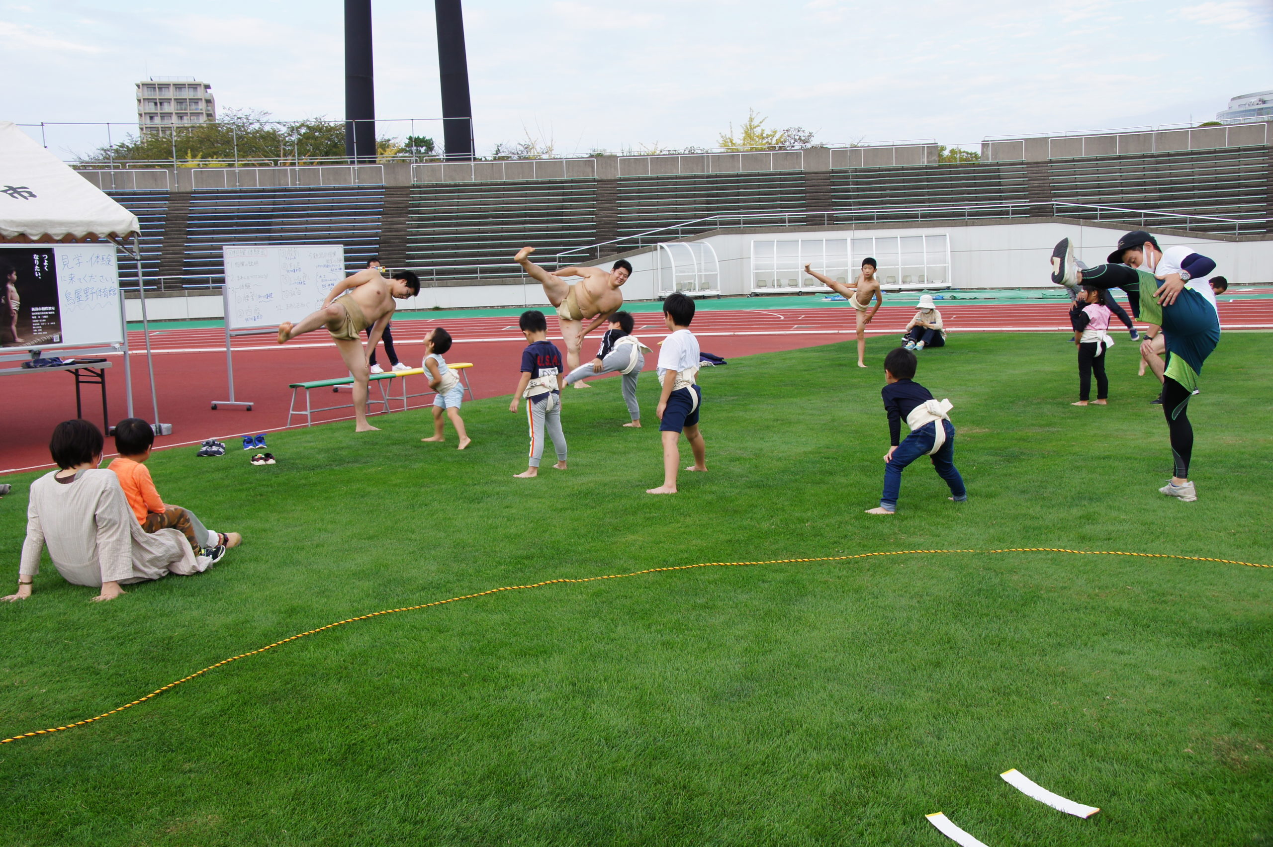 アクティブ・チャイルド・プログラムによるウォーミングアップのあと、陸上・ラグビー・相撲・親子ヨガ・ウエイトリフティングにわかれて体験会をおこないました。