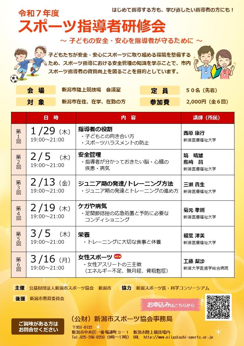 これからスポーツ指導を始める方も、学び直したい指導者の方も、ぜひこの機会にお申込みください。